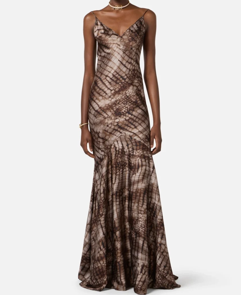 abito red carpet in raso stretch con stampa alligatore elisabetta franchi