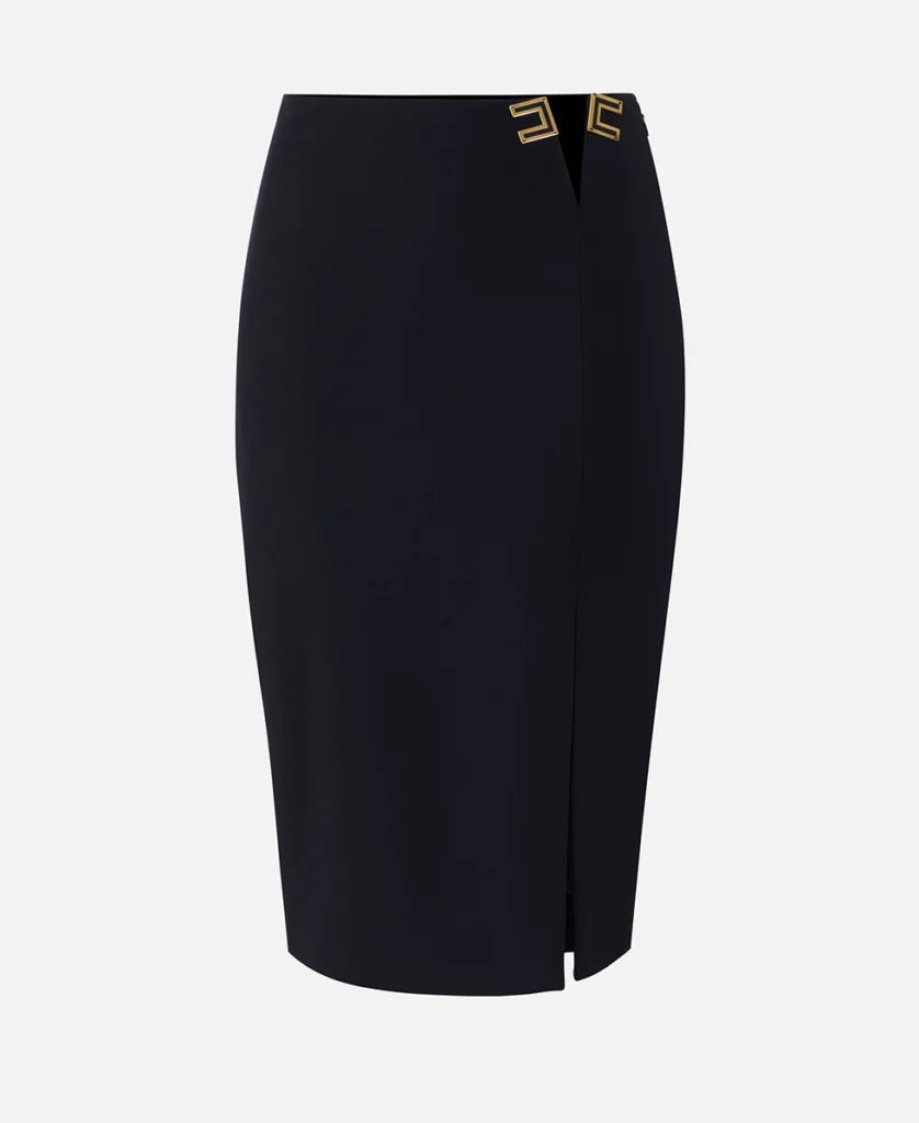 gonna in doppio crêpe stretch con dettagli logo elisabetta franchi