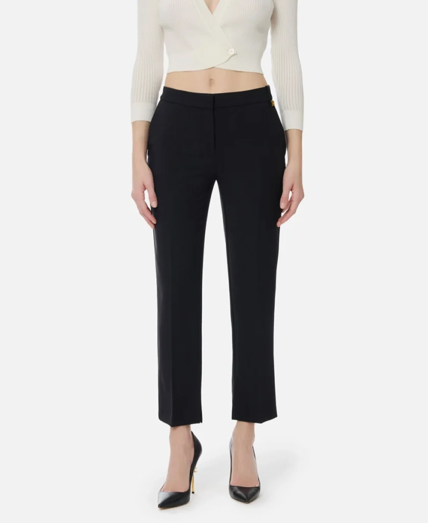 pantaloni in doppio crêpe stretch con logo charm elisabetta franchi