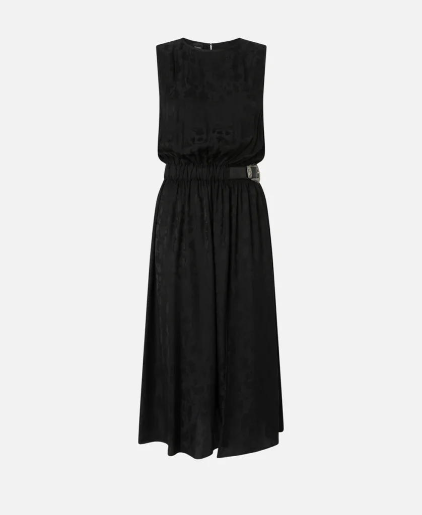 abito midi pinko smanicato in jacquard floreale con cintura