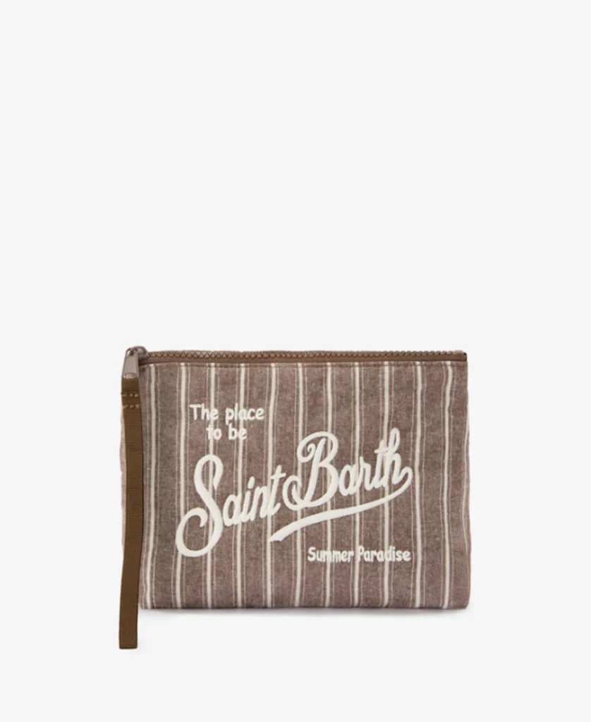 pochette aline in cotone marrone a righe strette saint barth