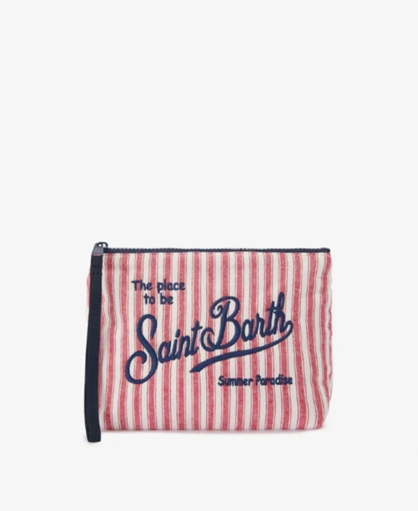 pochette aline in cotone rosso e bianco a righe strette saint barth
