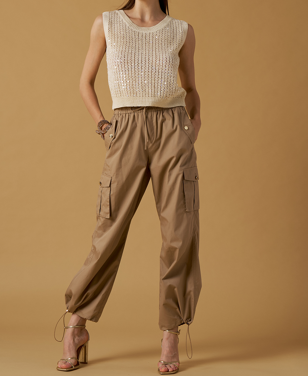 Bomber in cotone con elastico in vita e tasche sul davanti
